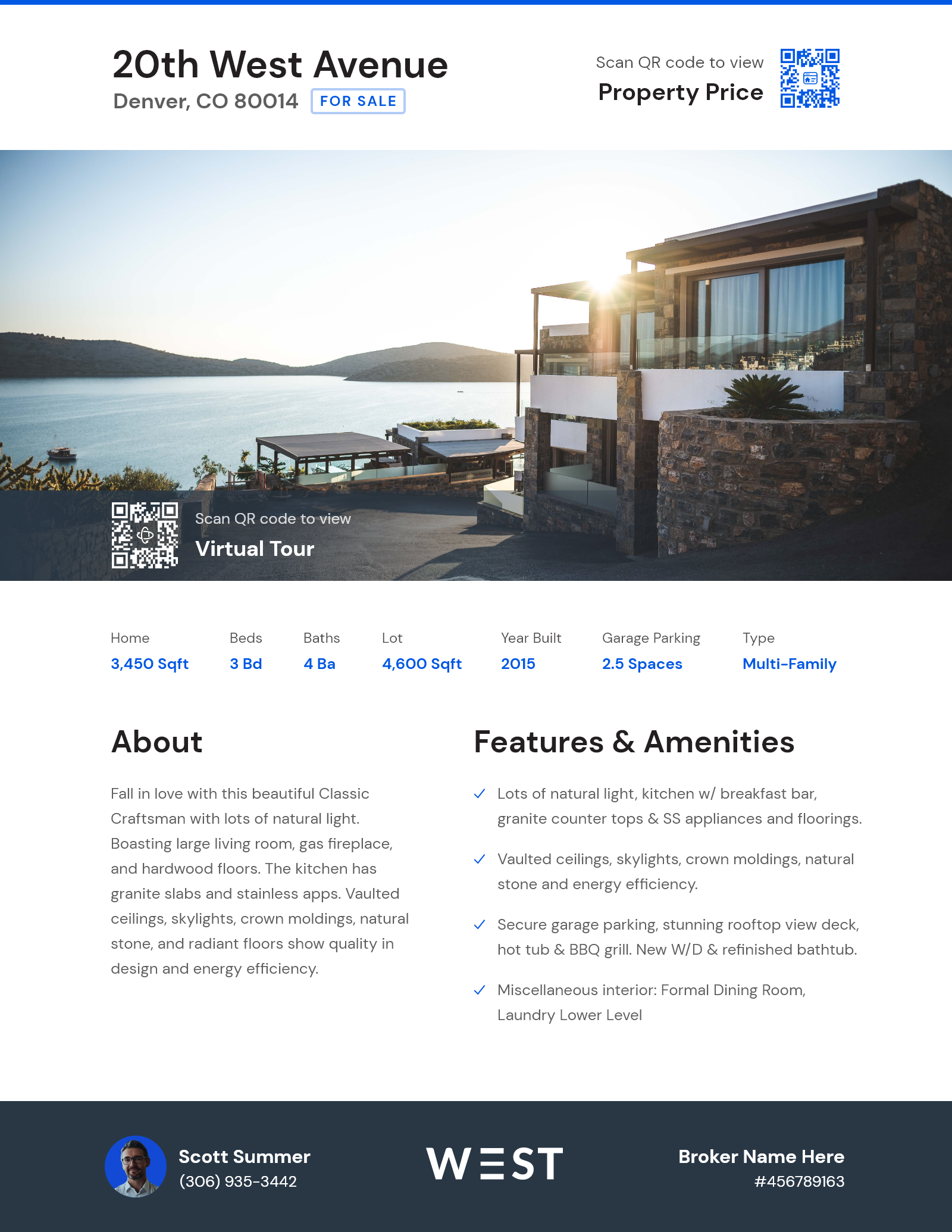 Six professionally designs flyers to match your property websites. Ask your photographer for details.